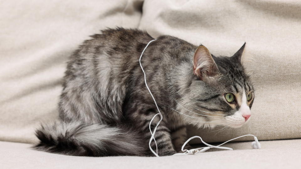Cats sometimes chew on cords, which can result in electrocution. Use cord covers or tape to secure cords and prevent access.