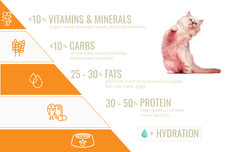 Just like us, cats need a mix of nutrients – proteins, fats, carbs, vitamins, and minerals. These are the keys to keeping your purrfect companion in top shape.